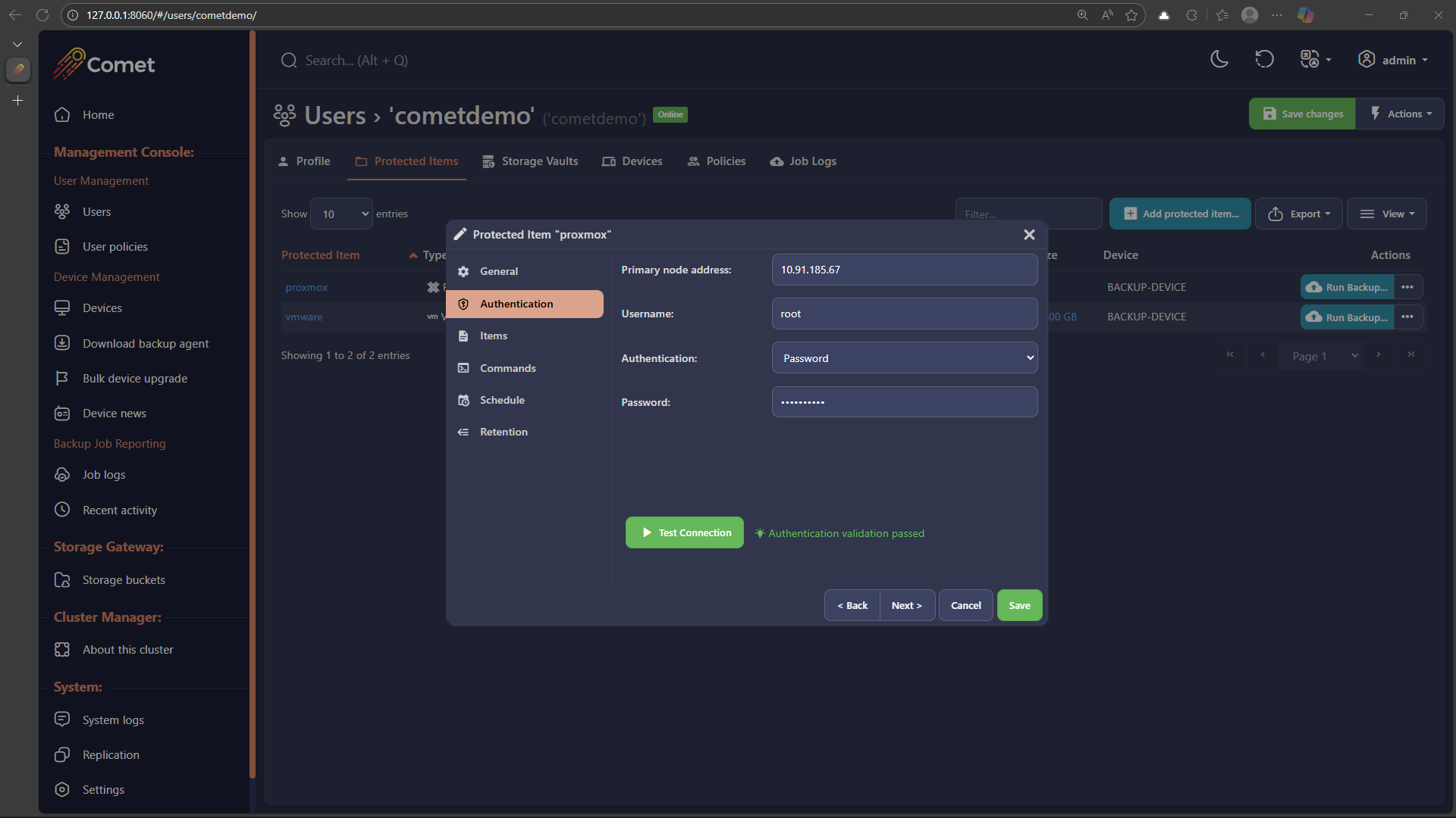 +The Comet Backup agent must be running on the same network as the target Proxmox Cluster, and the Proxmox Cluster version must be Proxmox VE 8.x or higher.